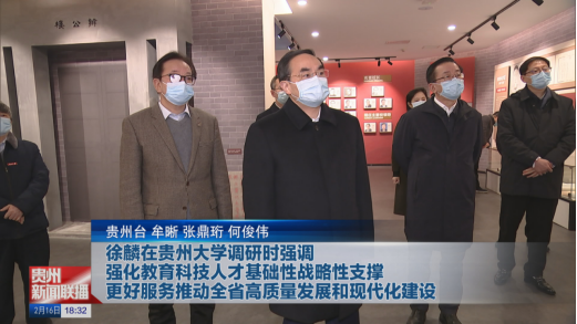 2月16日,省委书记、省人大常委会主任徐麟深入贵州大学调研教育科技人才工作。他强调,要深入学习宣传贯彻党的二十大精神,认真贯彻落实习近平总书记视察贵州重要讲话精神和关于教育科技人才工作的重要论述,牢记嘱托、感恩思进、感恩奋进,坚持科技是第一生产力、人才是第一资源、创新是第一动力,进一步强化教育科技人才基础性战略性支撑,开辟发展新领域新赛道,不断塑造发展新动能新优势,更好服务推动全省高质量发展和现代化建设。省领导卢雍政、时玉宝、陈少波、张敬平参加调研。