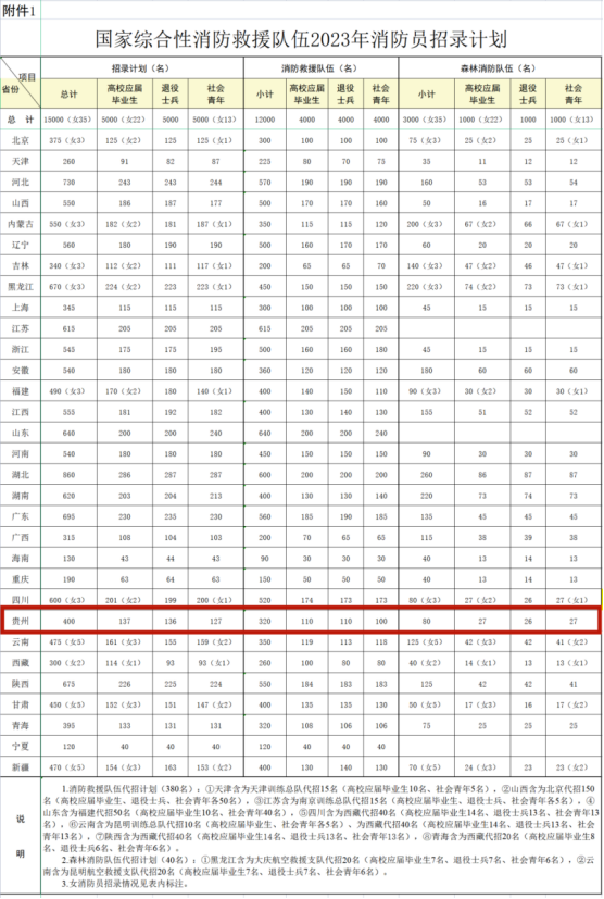 24日从应急管理部获悉,国家综合性消防救援队伍2023年消防员招录工作已正式启动。今年共计划招录消防员15000名,其中,计划在贵州招录400人。