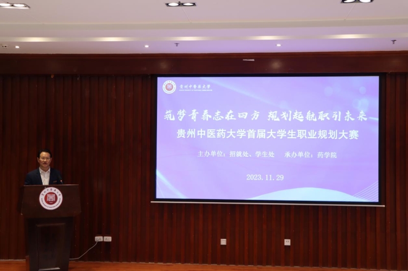 为强化学校大学生生涯教育和就业指导,进一步增强同学们生涯规划意识,引导同学们尽早做好就业准备,切实促进学校毕业生高质量充分就业,11月29日,贵州中医药大学在花溪校区图书馆学术报告厅举行2023年职业规划大赛决赛。校党委副书记邬卫东出席并致辞,招就处、学生处、校团委及各学院相关负责人、师生代表参加。