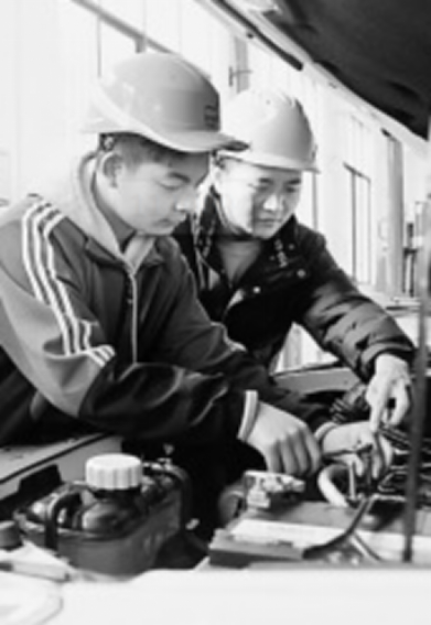 湖南省永州市江永县职业学校老师在指导学生进行汽修实践操作。