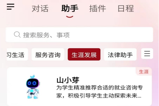 从2024年开始,山东大学着手开发建设“山小芽”AI生涯发展助手,依托大数据算力分析,挖掘学生在考研、保研、出国(境)、求职、考公、创业等方面的成长发展需求,建立从“我认为学生需要”转向“学生主动提出需要”的生涯指导新模式,助推学生观念发生从“职业规划”到“学业职业目标养成”的深层次转变。