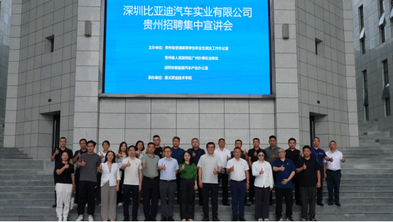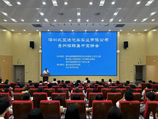 为深化产教融合,搭建政校企协同育人桥梁,促进高校毕业生更高质量就业,9月29日下午,由贵州省普通高等学校毕业生就业工作办公室、贵州省人民政府驻广州办事处业务处、深圳市新能源汽车产业办公室联合主办,遵义职业技术学院承办的“深圳比亚迪汽车实业有限公司贵州招聘集中宣讲会”在遵义职业技术学院举行。