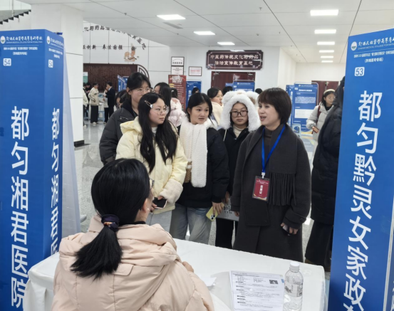 12月24日,由黔南州人力资源和社会保障局、黔南州教育局和黔南民族医学高等专科学校联合主办的2026届高校毕业生“魅力黔南 职等你来”冬季专场招聘会在黔南民族医学高等专科学校图书馆成功举办。活动紧扣就业优先战略,聚焦医药卫生领域人才供需对接,为毕业生搭建优质就业平台,为黔南医疗健康产业发展注入新动能。
